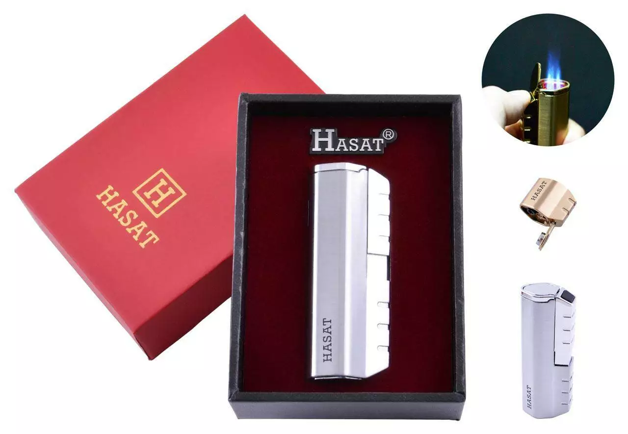 Зажигалка в подарочной коробке HASAT (Острое пламя) №4320 Silver