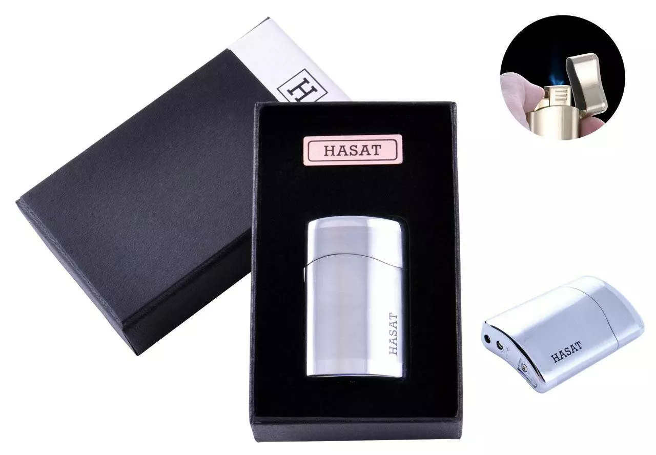 Зажигалка в подарочной коробке HASAT (Турбо пламя) №4312 Silver