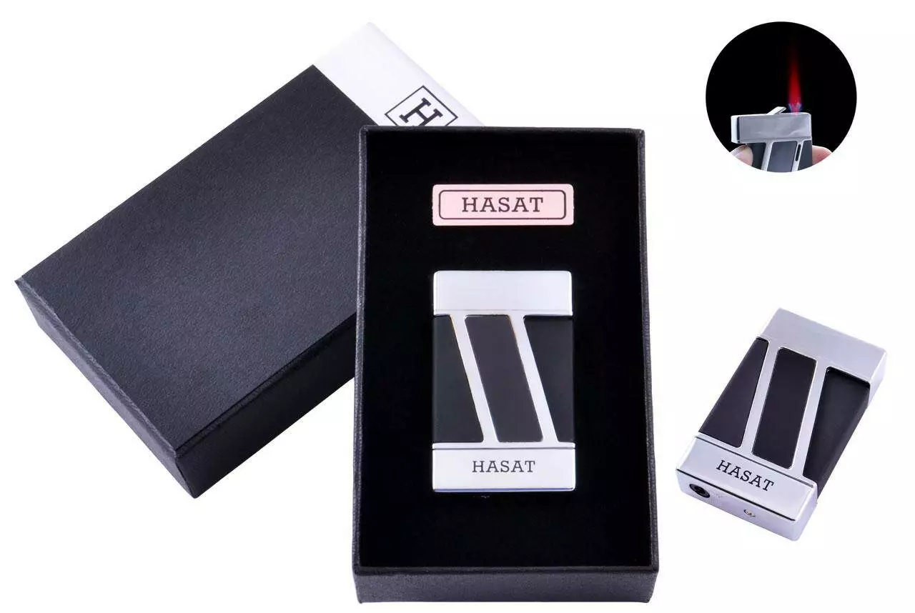 Зажигалка в подарочной коробке HASAT (Турбо пламя) №4315 Silver