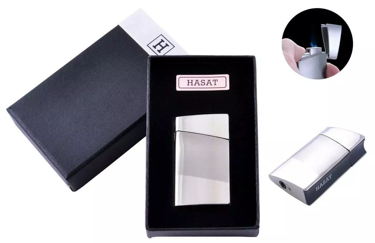 Зажигалка в подарочной коробке HASAT (Турбо пламя) №4317 Silver