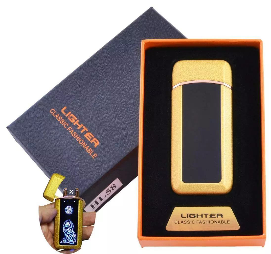 Зажигалка в подарочной коробке Лев (Двойная молния) HL-58 Gold