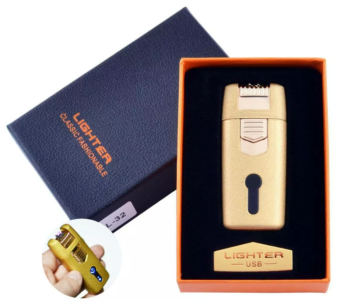 Зажигалка в подарочной коробке Lighter (Двойная молния) HL-32 Gold
