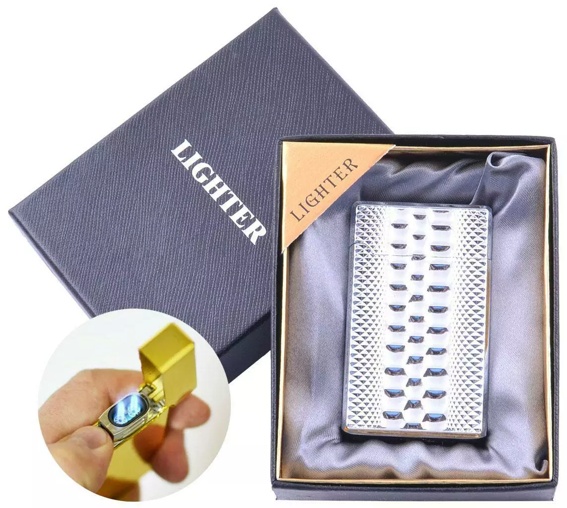 Зажигалка в подарочной коробке (Двойное острое пламя) №4648 Silver