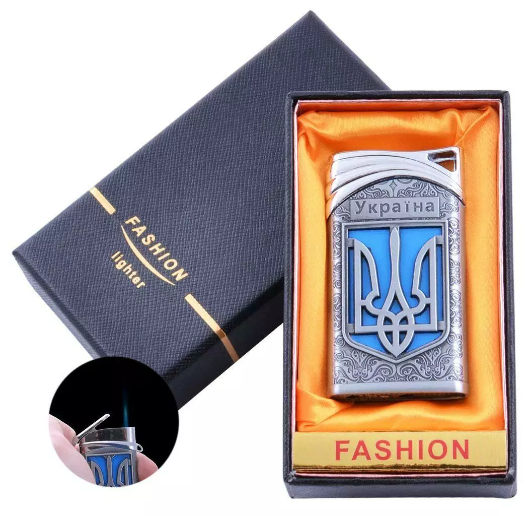 Зажигалка в подарочной коробке Украина (Острое пламя) UA-20 Silver