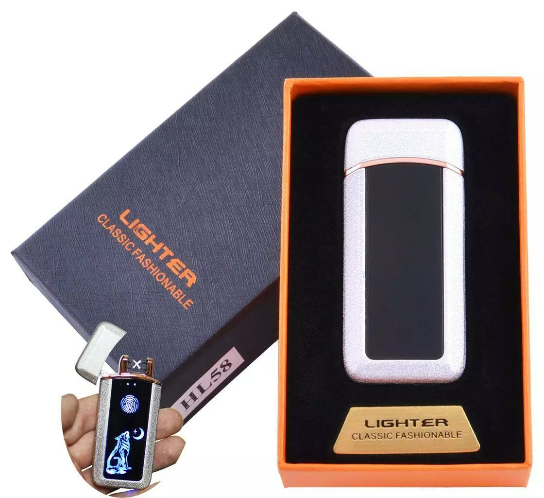 Зажигалка в подарочной коробке Волк (Двойная молния) HL-58 White