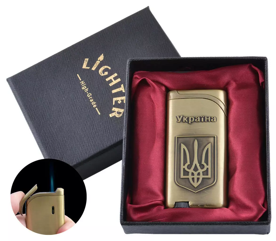 Зажигалка в подарочной упаковке Герб Украины (Острое пламя) UA-6