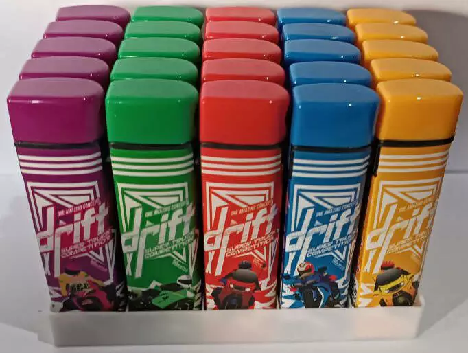 Зажигалки пластиковые moto drift (нажим на крышку,турбо пламя острое ????) F6-4