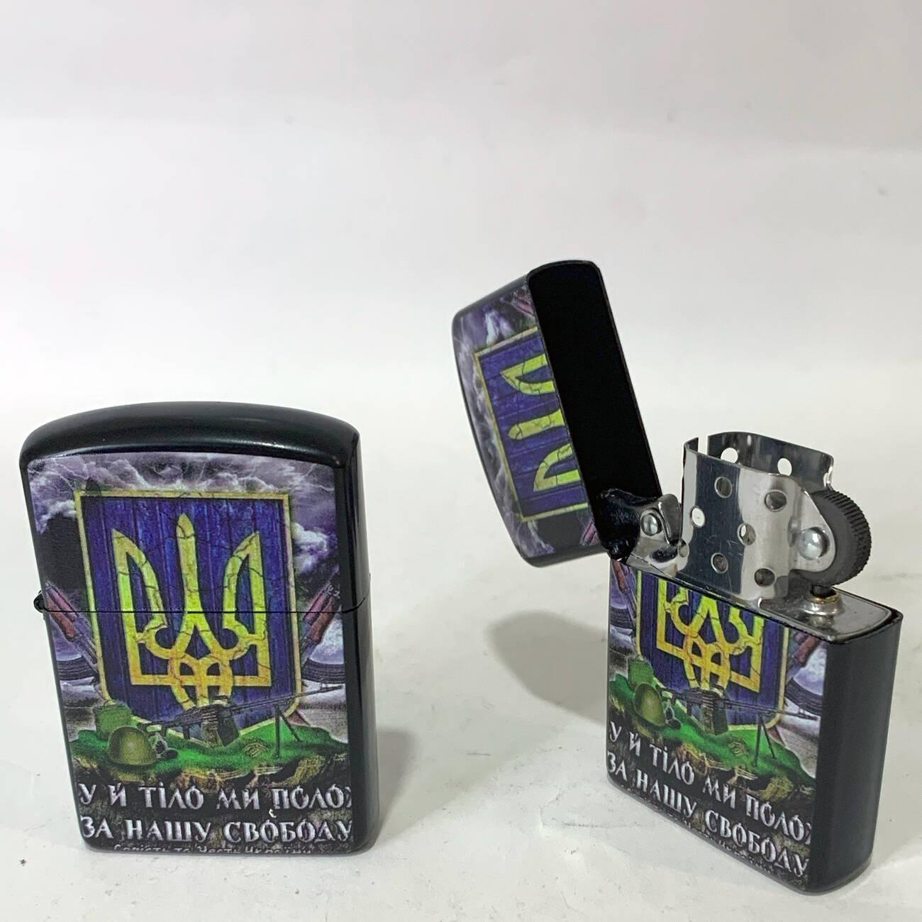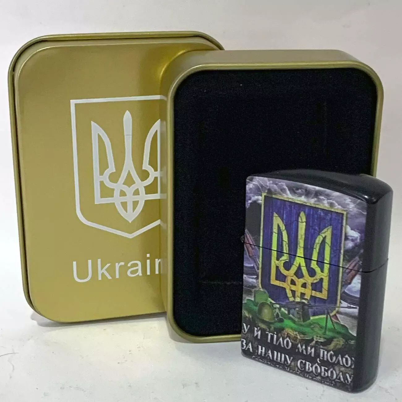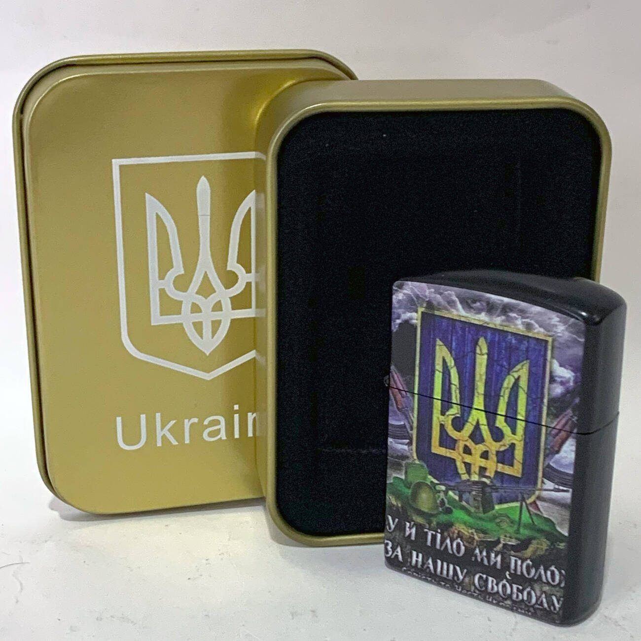 Зажигалка бензиновая в подарочной коробке Герб Украины ???????? HL-326D Черная