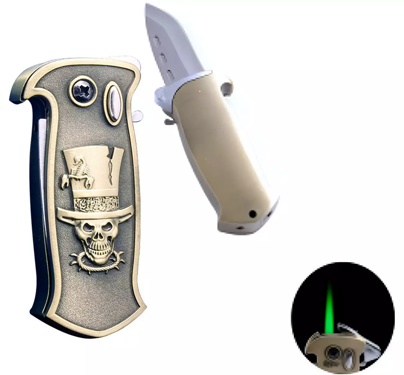 Зажигалка газовая с ножом ???? "Череп в шляпе цилиндр ????" (Турбо пламя ????) 4585