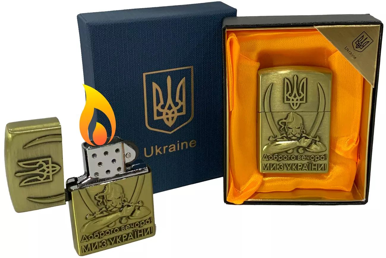 Зажигалка газовая Украина, Козак (Обычное пламя ????, Кремниевая, Подарочная упаковка????) HL-4550-7 Bronze