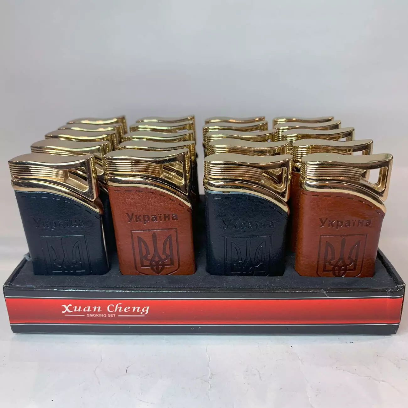 Зажигалка карманная обтянута кожей Украина ???????? (Турбо пламя) HL-322 Black