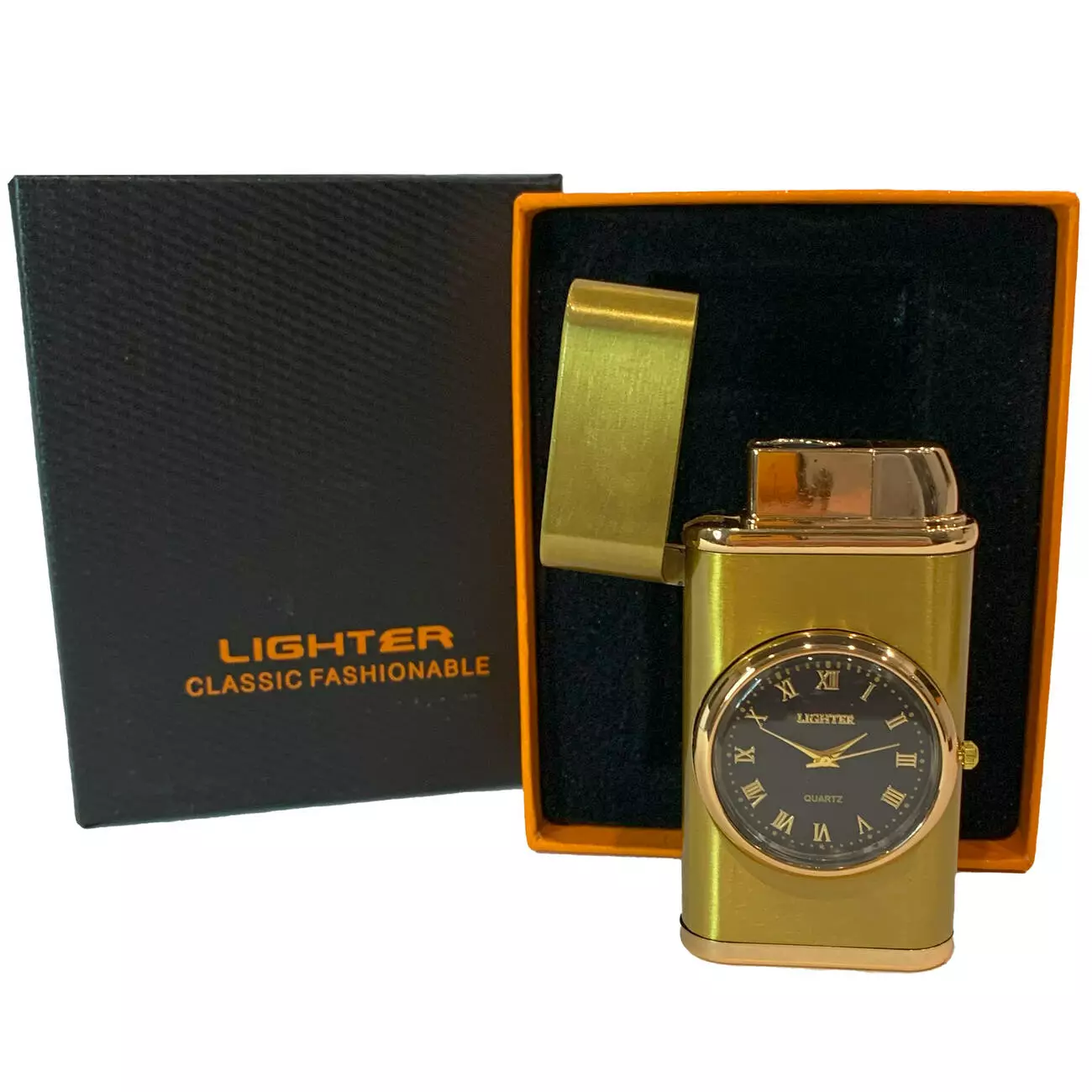 Элегантная зажигалка с встроенными кварцевыми часами – это сочетание классического дизайна и практичности. Корпус выполнен с глянцевым покрытием, а золотистые элементы придают аксессуару роскошный вид.