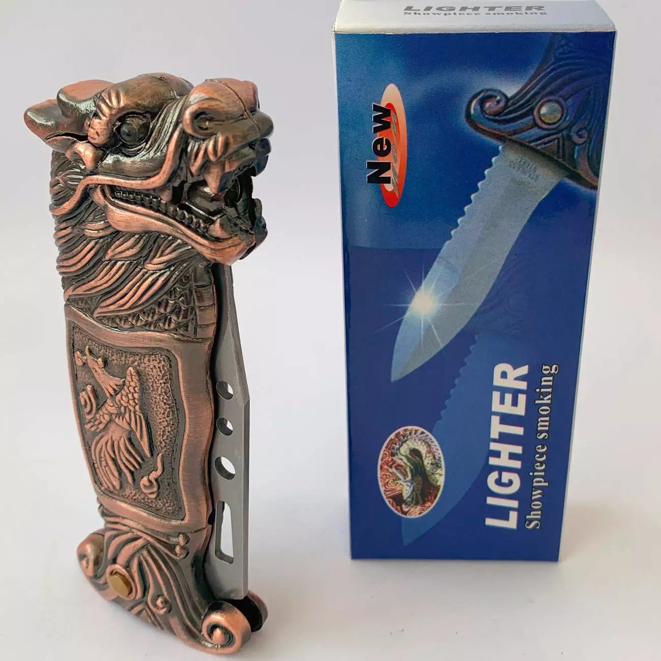 Зажигалка с ножом "Дракон" (Турбо пламя????) HL-605 Antique brass