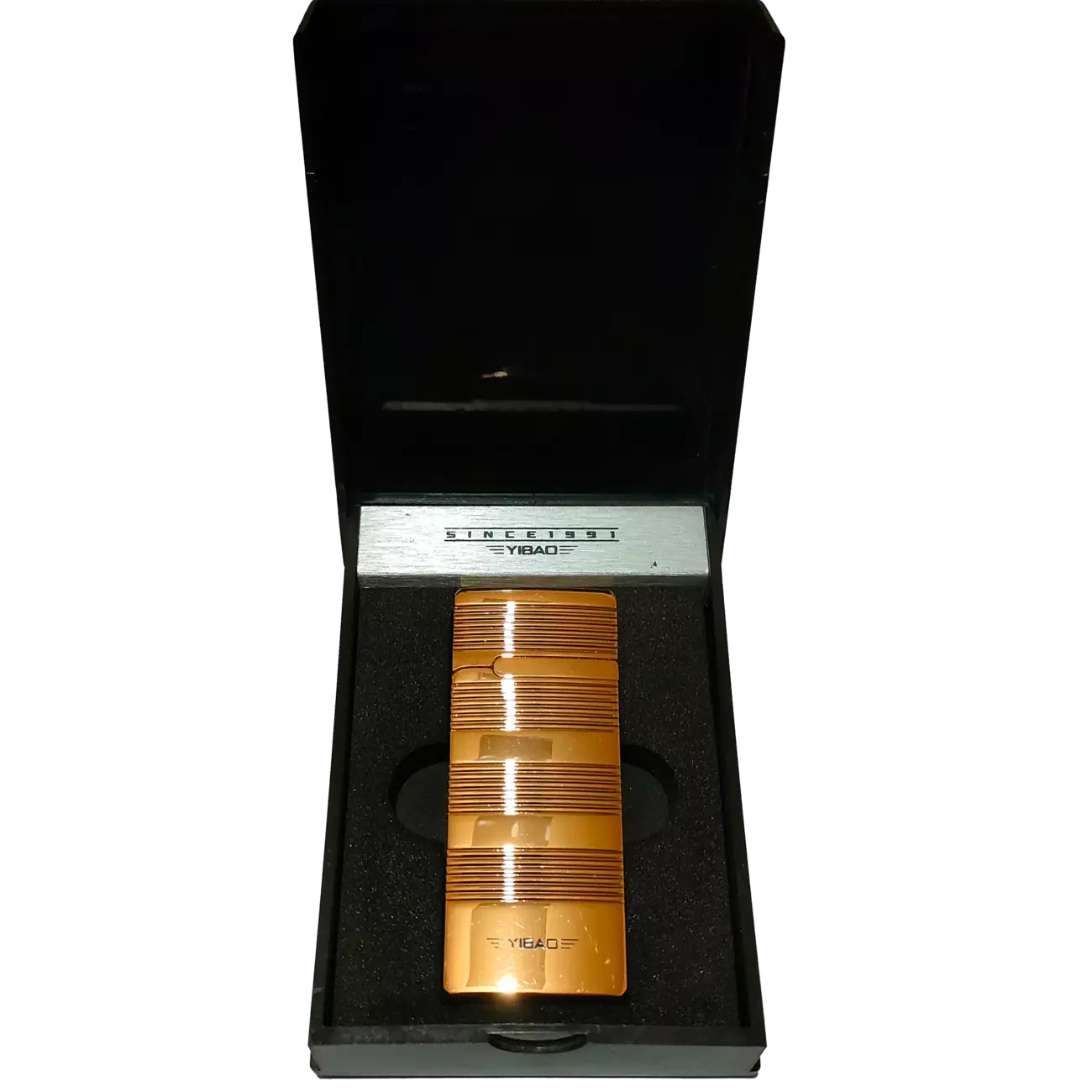 Элегантная зажигалка Yibao в стильном металлическом корпусе золотистого цвета. Изысканный дизайн с горизонтальными насечками обеспечивает удобство использования и придает аксессуару роскошный вид. Поставляется в оригинальной подарочной коробке с фирменной маркировкой. Отличный выбор как для личного использования, так и в качестве презента.