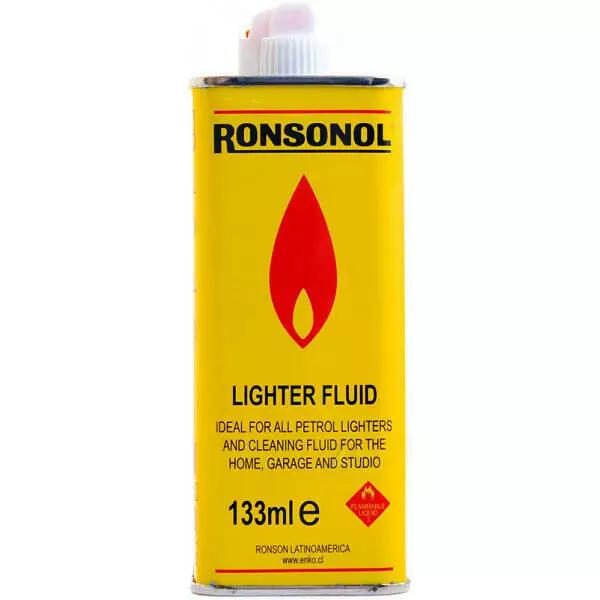 Ronsonol Lighter Fluid — фирменная жидкость для заправки бензиновых зажигалок. Подходит для всех популярных моделей: Zippo, Ronson и др. Благодаря чистому составу, обеспечивает стабильное и безопасное горение. Также может использоваться как очищающее средство (удаление следов клея, жира и прочего).